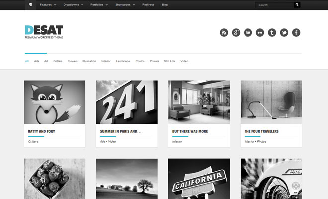 Desat is elegant and responsive portfolio WordPress theme with clean, sleek and customizable design. The Desat theme includes awesome desaturation effects, lots of advanced features and functions and is based on a solid backend framework.