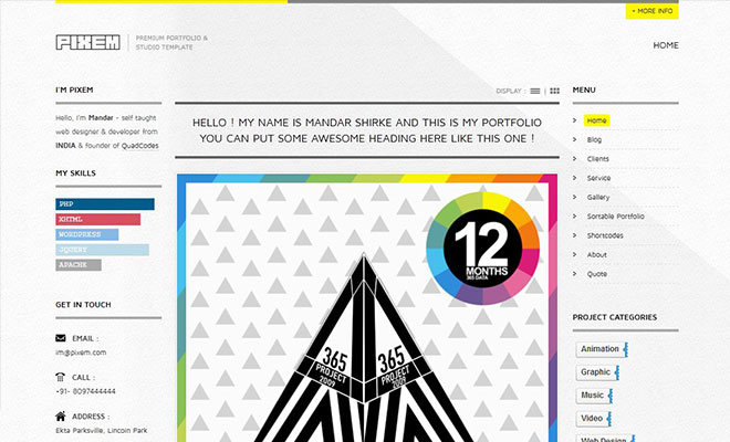 Pixem is the Responsive Portfolio Template for Individual Professionals & Agencies. Clean Lines & Minimal Design Approach Highlights your Work. Showcase your Portfolio on any device efficiently with its Unique Responsive layouts.