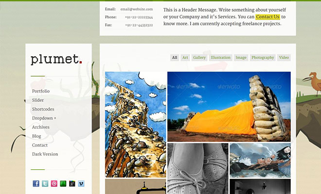 Plumet is a Responsive AJAX Portfolio Theme designed for Agency & Individual websites. Show off your Portfolio Items in a Masonry Layout with AJAX Details Loading. Every Agency and an Individual Website’s motive is to look clean and at the same time intuitive so Plumet offers you just that by also being Responsive.