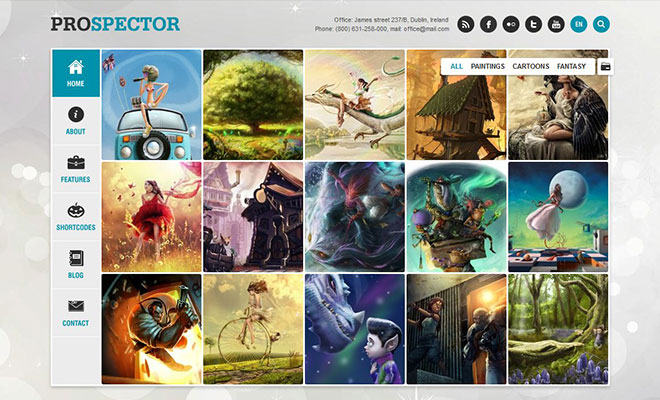 Prospector is a fully featured Responsive theme. It’s perfect for portfolio websites. Excellent Sortable Portfolio displays all your portfolio items directly on the homepage. Each portfolio item has it’s own page with more details. It’s a fully loaded portfolio theme with tons of nice stuff you’ll love using. Precise and user friendly admin panel allows you to do a lot of customisations without knowing any HTML or CSS . Colours, images, fonts, widgets, sliders, portfolios, galleries,… everything can be customised and configured via admin panel.