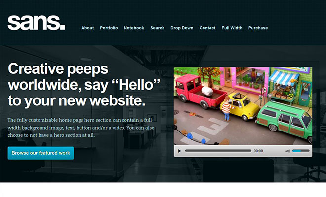 Sans is a responsive WordPress portfolio theme designed and developed for today’s savvy creative. Complete with audio and video support, this theme gives you the tools to easily manage and publish your work so you can concentrate on what you are best at… being creative.