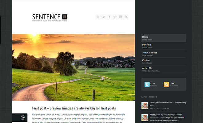 Sentence is a responsive Blog and Portfolio Theme (try resizing your browser), suited for users who want to run a professional or personal blog and in addition to that want to showcase their work on a neat portfolio site.