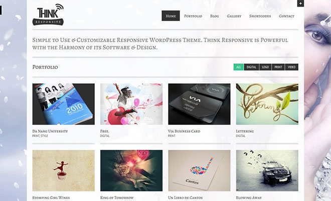 Think Responsive is simple to use & customizable responsive wordpress theme. Think Responsive is powerful with the harmony of its software and design. Best choice for Photographer and Designer portfolios or Personal websites. Think is built with the latest WordPress.