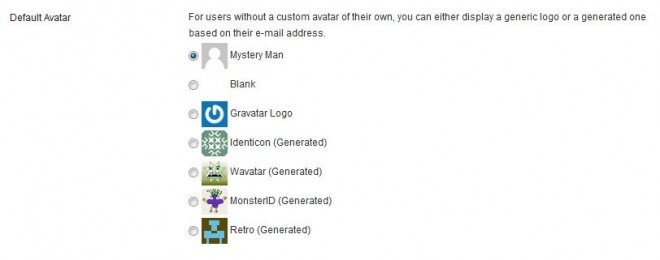 Screenshot of default Gravatar options