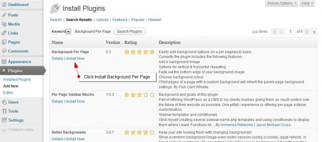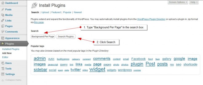 Luckily there is a plugin available titled Background Per Page that allows you to specify background images for individual WordPress posts or pages from a new custom settings section that is made available after installing the plugin.