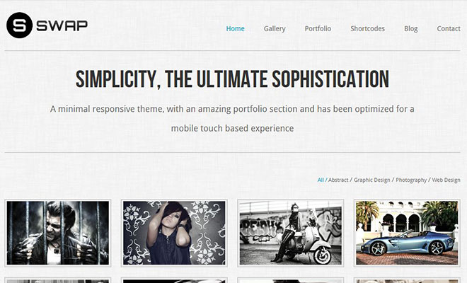 Swap is a minimal responsive wordpress portfolio theme with an amazing portfolio section that has been optimized for a mobile touch based experience.