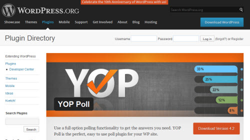 YOP Poll is a free WordPress Poll plugin that seems to have everything rolled into one package. You can access the poll options from the WordPress dashboard. This plugin will help you to take care of all the minor details that should be accounted.