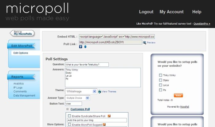 You too can make your own online poll in the sidebar of your blog or website and MicroPoll makes the process quick and easy.