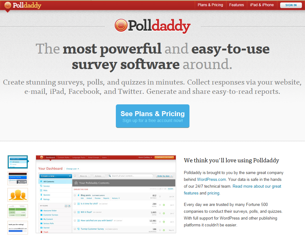 There are some WordPress plugins out there that do their jobs just fine. But if you want a more comprehensive solution, Polldaddy will be your perfect poll system.