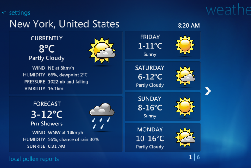 It grabs every bit of related information using the state of the art Weather Underground API. 99.99% of the data displayed on the Weather Underground plugin is up to date and accurate.