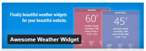 Up next to on the list of weather applications is the Awesome Weather Widget Plugin. The Awesome Weather plugin is highly customizable and can be places basically anywhere on a website.