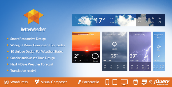 Better Weather is also translation ready. It can also auto detect a user’s location via IP. It has 10 unique designs for weather states. It also has widgets and a visual composer.