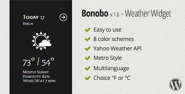 The Awesome Weather Widget Plugin is translation ready and supports many foreign languages. Users can also select their preferred unit of measurement. The Awesome Weather Widget Plugin can display temperatures in Fahrenheit or in Celsius.