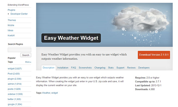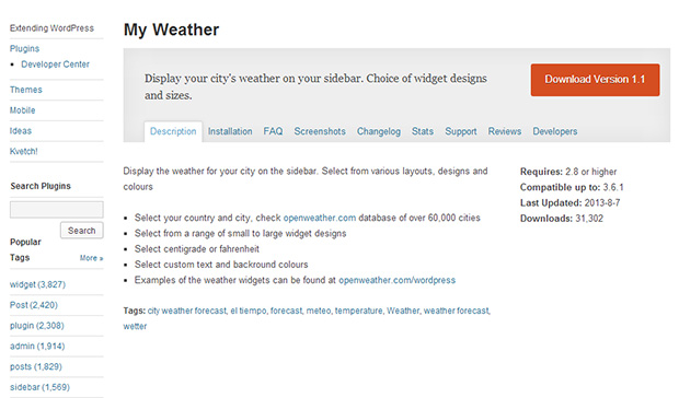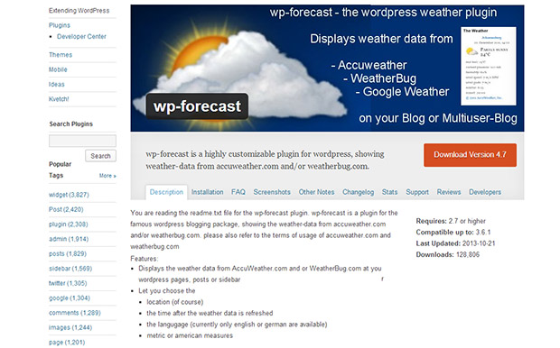 Most of the plugins will be from the WordPress directory. These can be installed by searching for them from the Dashboard area. These plugins provide an easy way through which a user can add weather related functionalities to a website.
