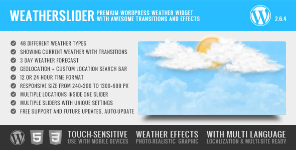 If you want a weather forecast and update displayed on the website in 48 different types, the Weather Slider WP plugin is the best out there since it has a good weather API.