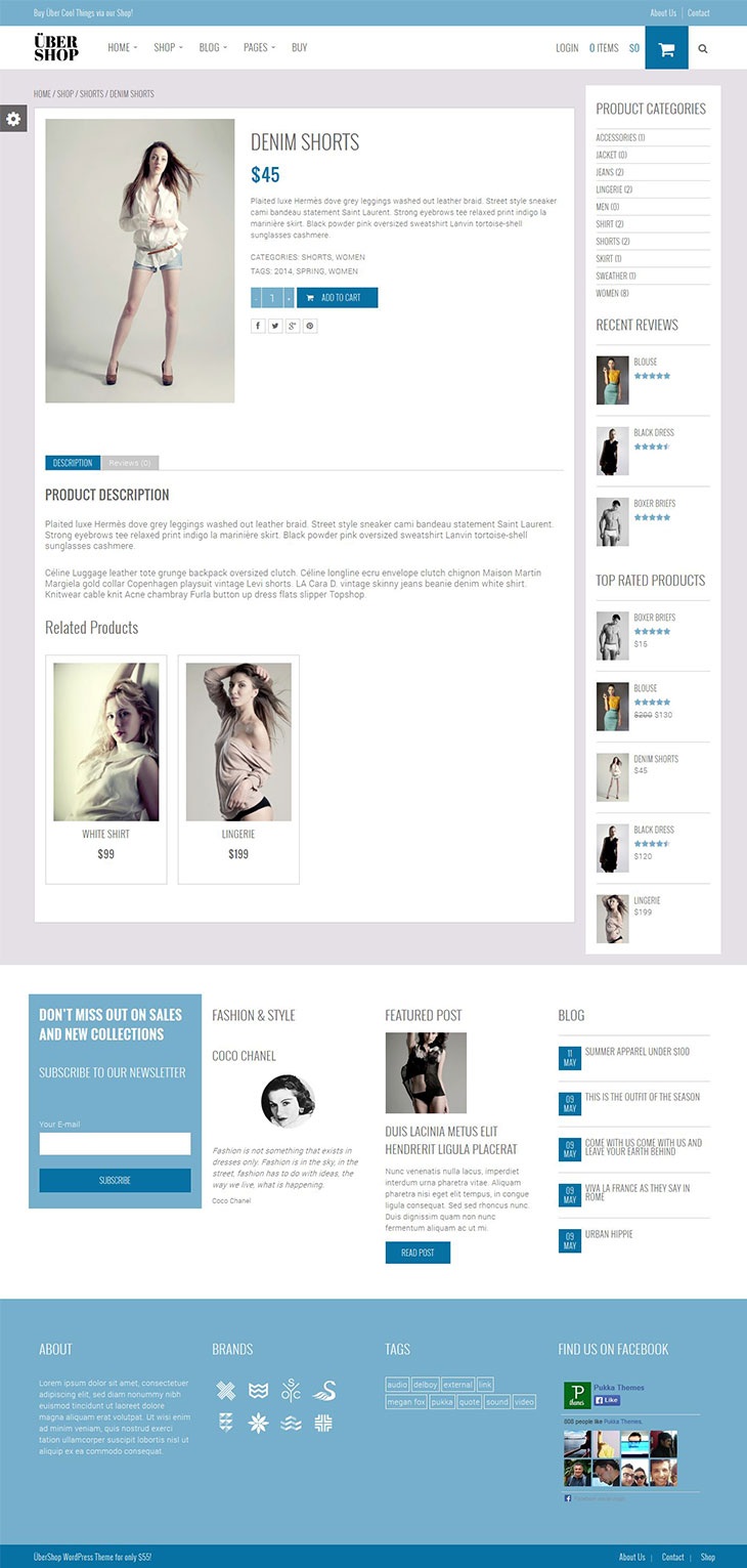 UberShop is a modern flat responsive WooCommerce theme that will allow you to setup an online store using WooThemes WooCommerce plugin with the end result of showcasing your products in a modern and clean eCommerce design.