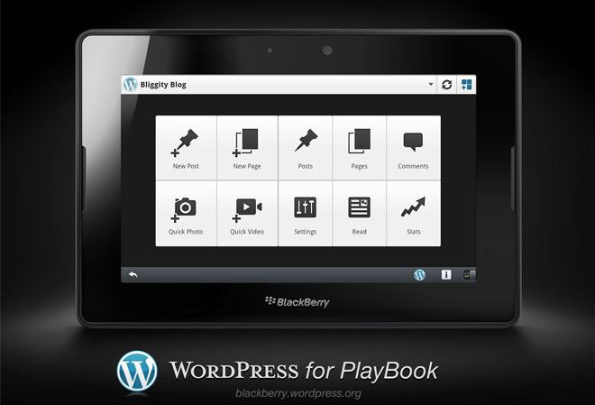 WordPress have recently announced the release of an update to their WordPress app for the BlackBerry PlayBook, the latest release takes the WordPress app to v2.1 which according to WordPress adds some totally radical stuff!. You can read below exactly what some of those new features are and download the app at the bottom of this article. Unfortunately I do not own a BlackBerry PlayBook so can give no feedback on how this app performs although I do like the look of it’s screen layout from pictures and videos I have researched.