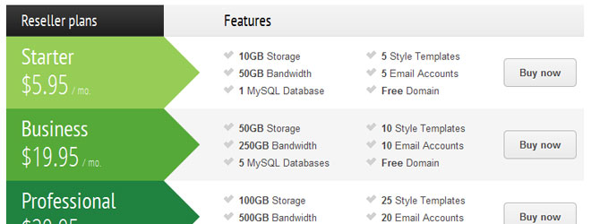 CSS3 Vertical Web Pricing Tables WordPress Plugin – $13