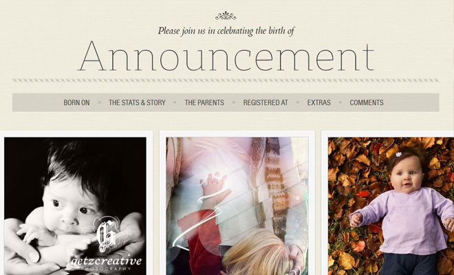 Announcement is a niche theme that is perfect for the most special announcements in your life. Use any of our preset homepage templates to announce your wedding, the birth of a new baby, the graduation of your eldest or the launch of your new business. And if you didn’t want that, use the flexible component system to bend Announcement to your desire.