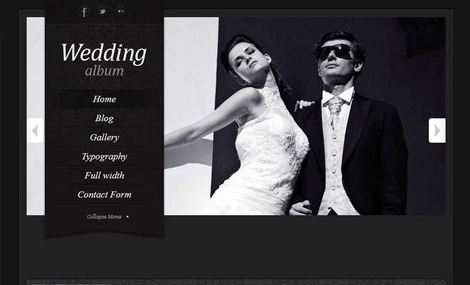 Wedding Album Premium WordPress Wedding Theme best suits for Personal Wedding pages or Portfolio Websites for professional Photographers. Wedding/Portfolio Album WordPress Theme uses a great deal of white/dark space, combined with a light/dark background to create an clean feel to this site. The elements of this web design are nicely spaced out, combined with an unlimited color-palette to create a clean overall design. The white background and elegant typography combines to make a very fresh design. This website is far from minimal, yet uses very clean edges, accentuated by the contrasts between content areas and backgrounds to create a highly clean web experience. This website includes quite a lot of content, yet uses a simple clean background and plenty of white space to create a minimal feel.